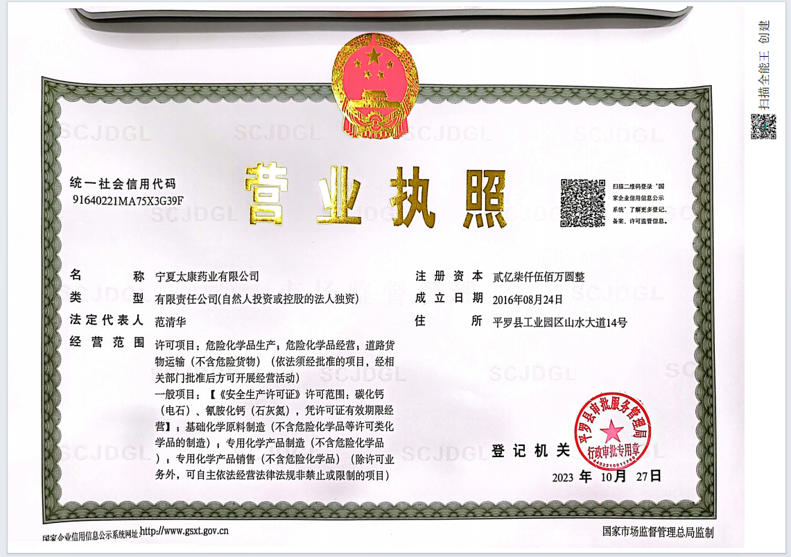 寧夏太康藥業(yè)有限公司是寧夏大地循環(huán)發(fā)展股份有限公司全資控股企業(yè)。工廠占地面積1600畝,擁有固定資產(chǎn)6.74億元人民幣,總裝機(jī)容量16萬(wàn)KVA,是寧夏回族自治區(qū) 40家大型工業(yè)骨干企業(yè)之一。企業(yè)現(xiàn)有員工1100余人,其中主要管理人員134人,專(zhuān)業(yè)技術(shù)人員112人,高級(jí)工程師5人、工程師10人、經(jīng)濟(jì)師3人、技師15人,公司擁有年生產(chǎn)能力:醫(yī)藥中間體產(chǎn)品-雙氰胺6WT、單氰胺5000T、一水肌酸3000T、氨基胍碳酸鹽3000T;化工基礎(chǔ)原料產(chǎn)品-石灰氮22.5WT電石12WT。